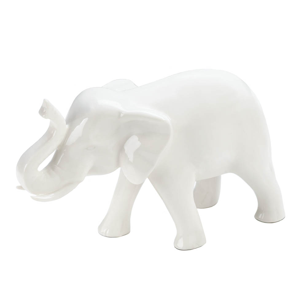 • Made from ceramic and depicted with his trunk raised up, you’ll love having this sleek white elephant in your home. Elephants are often used as symbols of wisdom, strength and good luck, and this charming white elephant also brings great style.