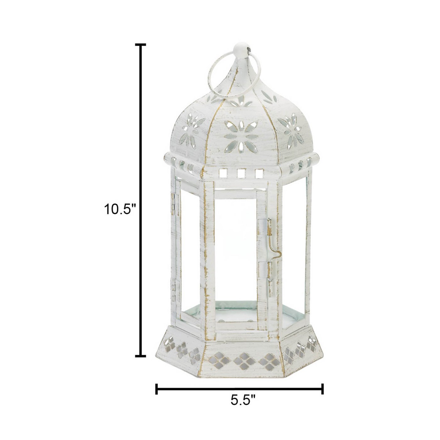 Place a candle or LED of your choice inside the lantern to illuminate your space in a soft and serene glow. Use to create a centerpiece for parties or special events, display on a countertop or coffee table, or light up your outdoor space with flickering light. This lantern is the perfect way to enhance your home's décor!