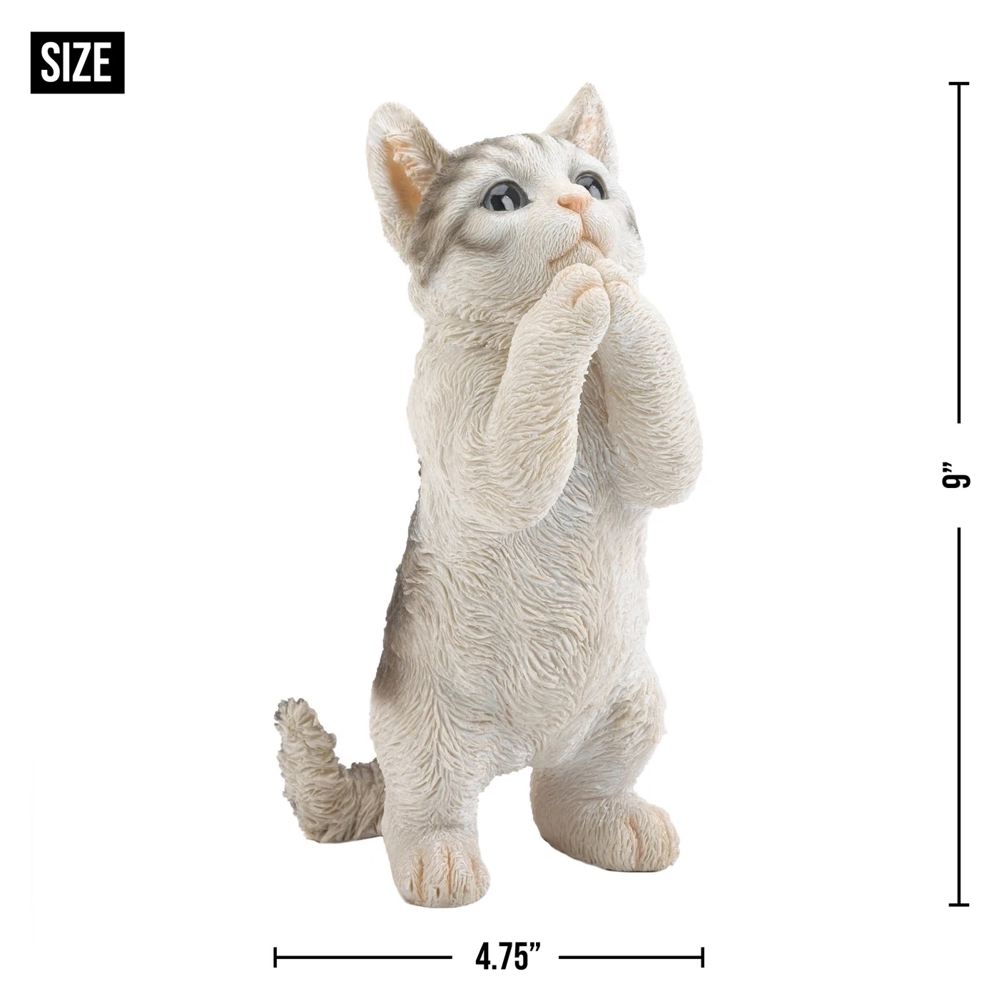 • Pretty please kitty weighs 0.8 lbs and measures  4.75" x 5" x 9" high.