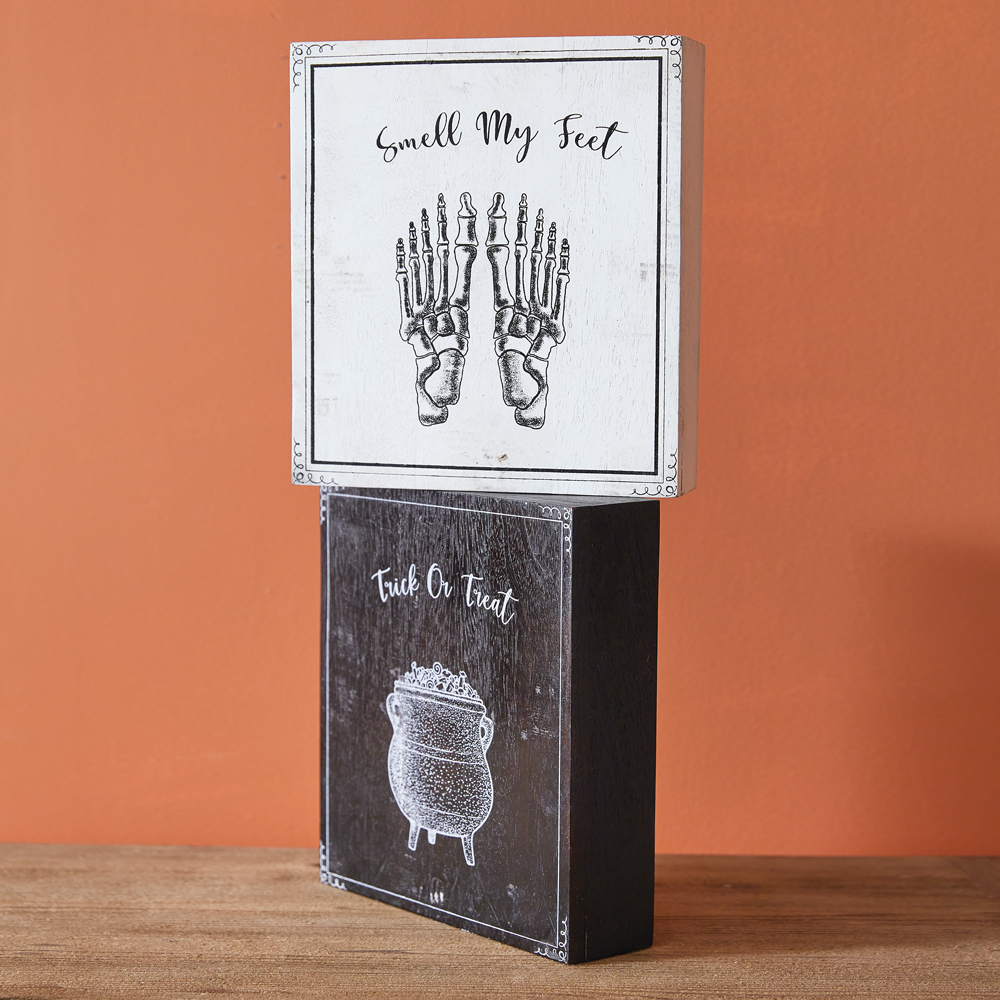 Home > Set of Trick-or-Treat Smell My Feet Wood Box Signs