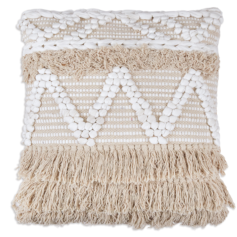 Switching up your space is a breeze with our boho throw pillow. Handwoven and crafted with care, pillow is created with a cotton blend and features a polyfil insert. The neutral colors are versatile and ageless, making it a seamless addition to a home.