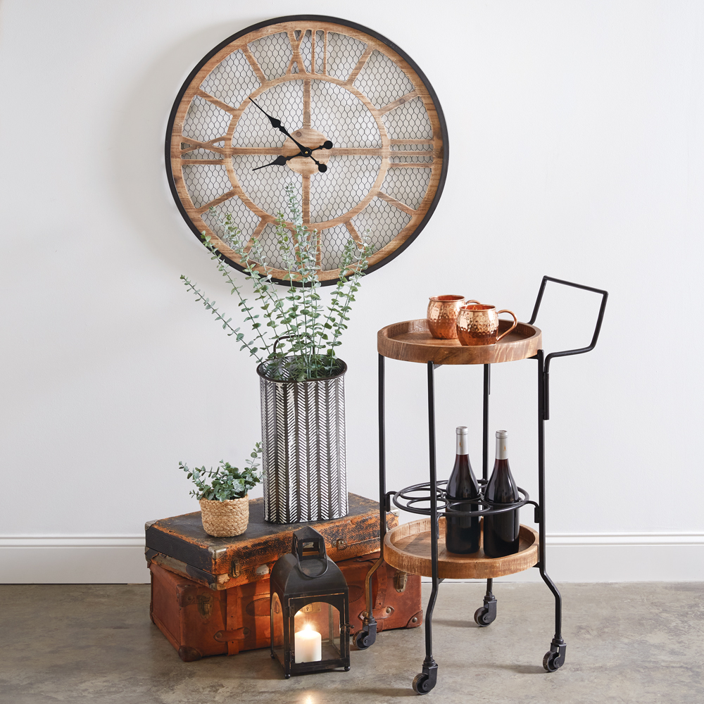 This charming clock will make you feel right at home with the farm. Rustic, yet stylish and functional, this clock is an impressive focal point on a wall. Item requires one AA battery, not included.
