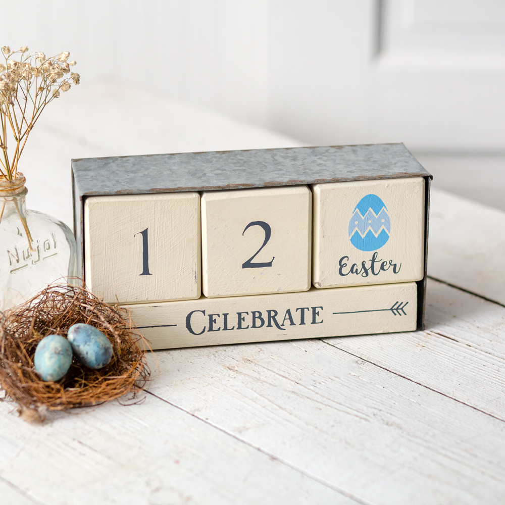 Wooden Block Calendar with Metal Box